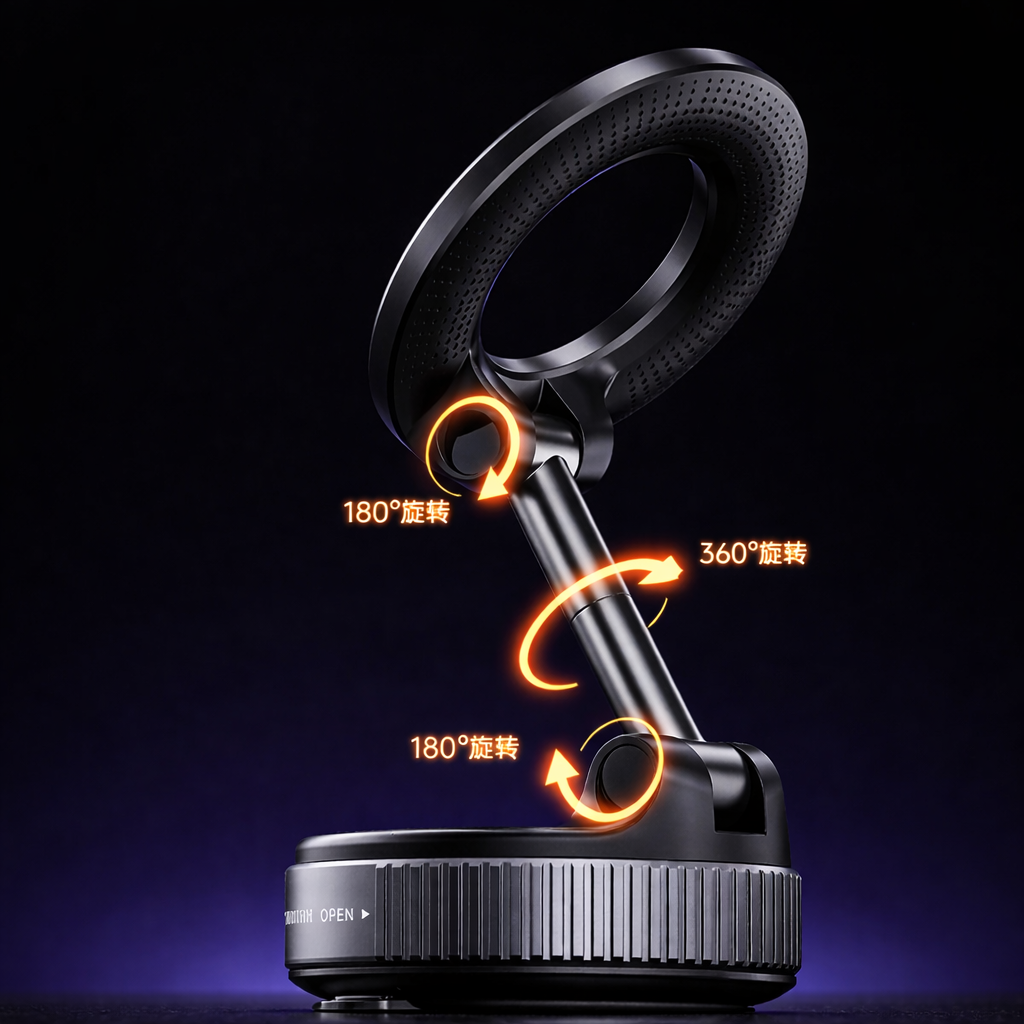 Advanced Air Vacuum Lock: The air vacuum suction system creates a tight seal on smooth dashboards, windshields, or flat surfaces. Once locked, it stays firmly in place, even during sudden stops or rough roads.